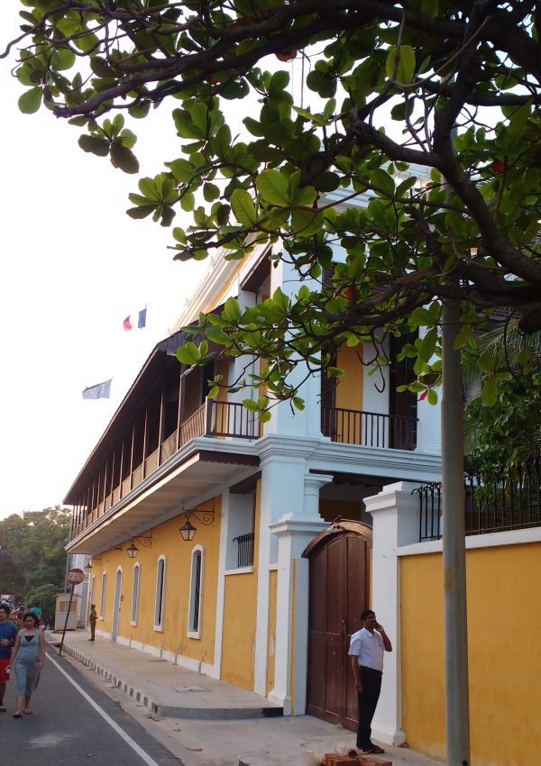 Auroville a much recent addition is not the only thing that has French imprint. The French Colonial Empire has left a huge chunk of its influence on the soil of Puducherry. And as I walked down the Goubert Avenue along the Promenade beach I realized how extensive this legacy was in this part of the country in the names of its cafes, streets and the colonial buildings….even the language survives on the street signs and boards.