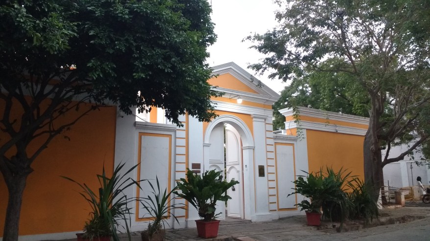 The foundation of original Governor’s palace was laid by French Governor Pierre Benoît Dumas in 1738 only to be destroyed in 1761 by British. It was rebuilt in 1766 as a single story rectangular buildings with wide verandah and porticos. Later it was extended into a two story building.